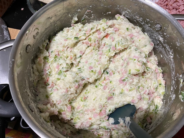 10) 이제 모든 준비된 재료를 감자에 넣어서 비벼주세요 골고루 잘 섞이게 해주세요