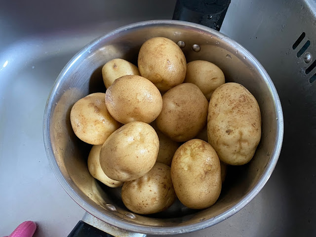 집에서 키운감자라 이쁘지도 크지도 않지만, 소금이나 설탕 없이 삶아도 맛있어요