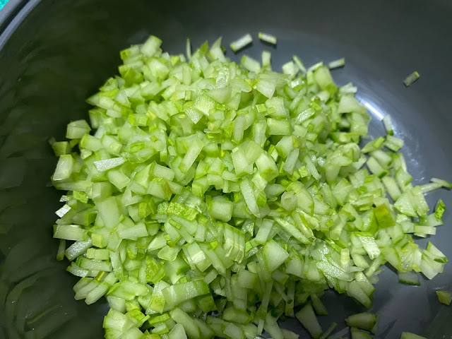 4) 다진 오이는 소금을 뿌려서 살짜 재워줄거에요. 약간 수분을 빼면 오이가 꼬들꼬들해서 씹는맛이 좋아져요