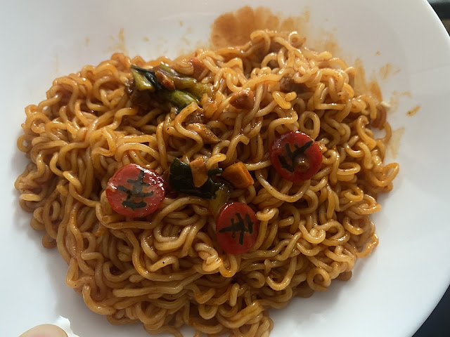 신라면 볶음면 완성!! 그릇에 담아보았어요