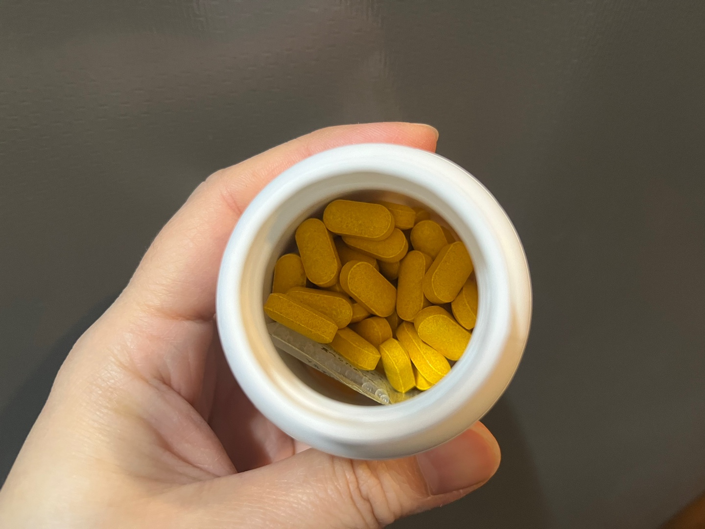 소형정제라 섭취하실때 목넘김에 부담감이 덜하답니다. 단, 강황의 향을 싫어하시는 분은 조금 불편하실 수 있어요.
