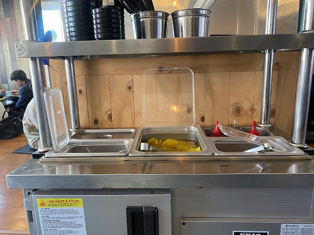 바로 아래에는 밑반찬 소스등이 있답니다. 추가 반찬은 셀프로 가져다 드셔야 해요