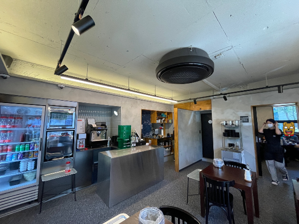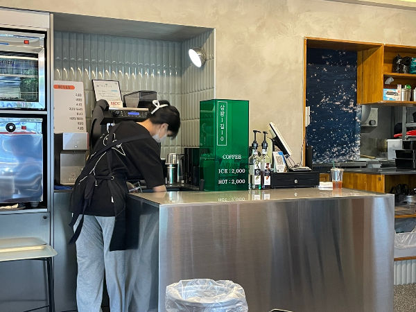 카운터 쪽에 초록색이 뭘까 하고 보니 매장의 주소와 커피 가격이네요. 식사를 하고나서 후식으로 커피한잔!!