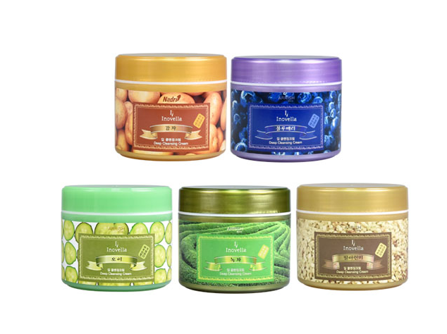 이노벨라 클렌징크림은 감자, 블루베리, 녹차, 오이, 발아현미 이렇게 5종류가 있답니다.