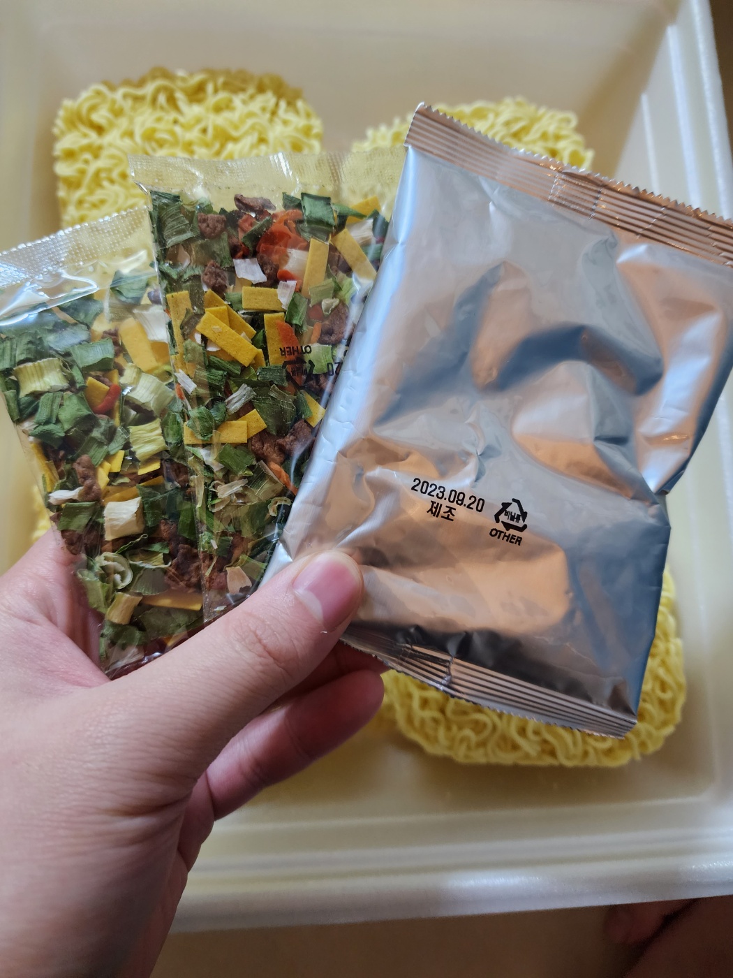 하지만 열어보면 건더기 스프 2개 분말스프3개로 소분되어있어요.