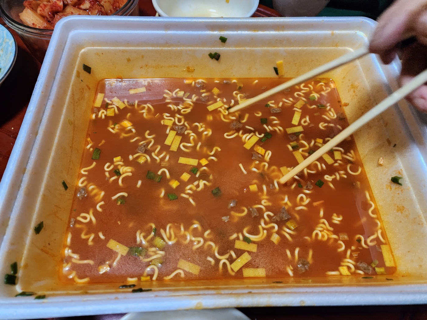 약간은 매콤하지 않을까? 점보니깐? 하지만 맛은 기존의 점보 도시락 컵라면과 다르지 않았어요.
