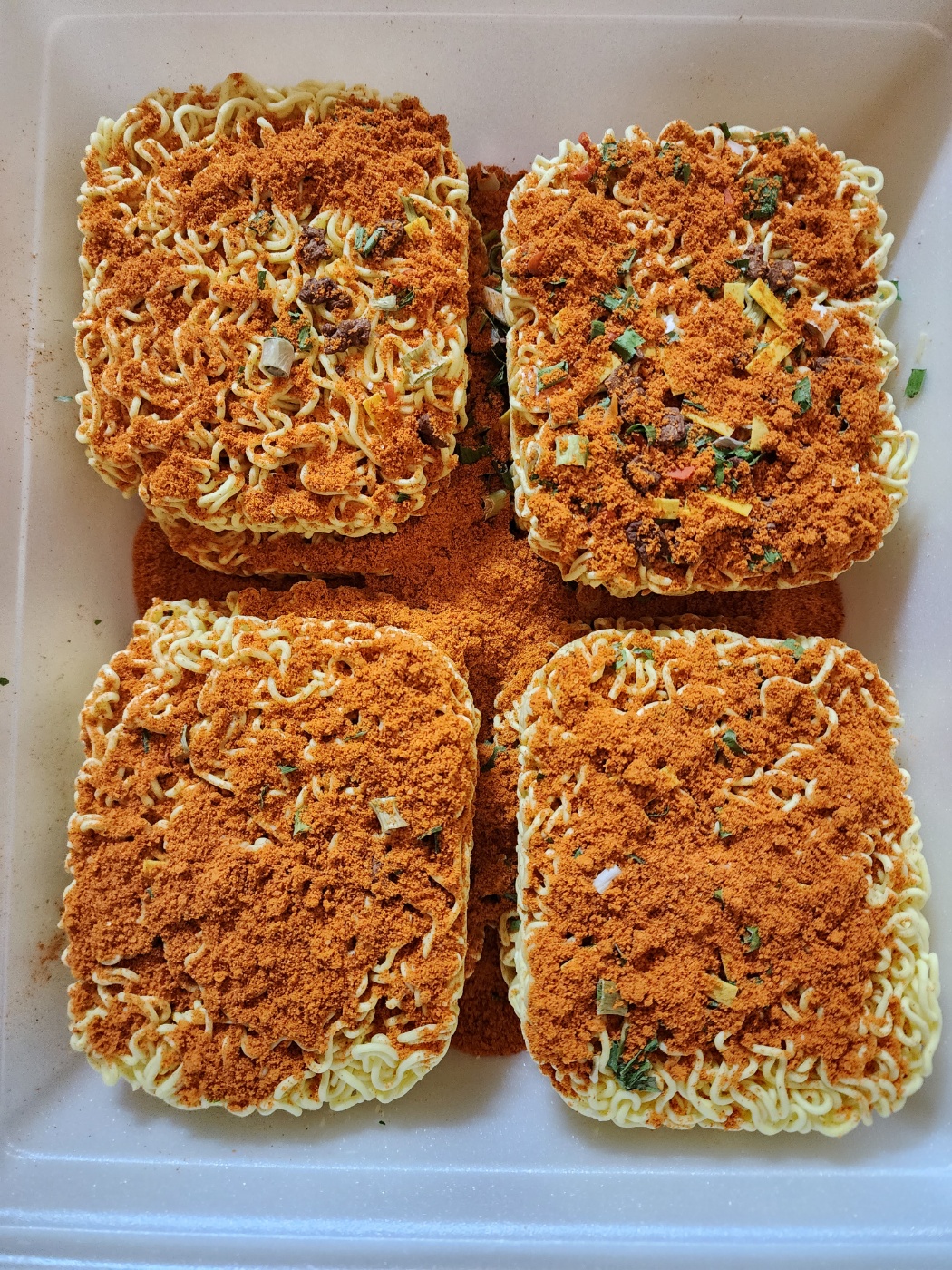 분말스프와 건더기 스프를 부었습니다. 물을 붇지 말고 이렇게 부셔먹어도 되지 않을까? 라는 생각을 잠시 해봅니다.