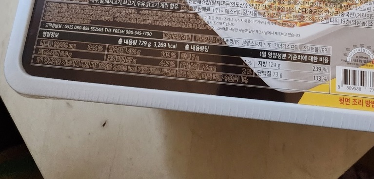 팔도 점보 도시락은 총 내용량이 729g 3,2529kacl 8인분에 대한 거지만 어마무시하죠.