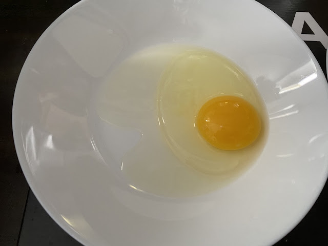 수입산 하얀계란을 접시에 깨보았어요. 껍질이 어찌나 단단한지 깨는데 살짝 당황했답니다.