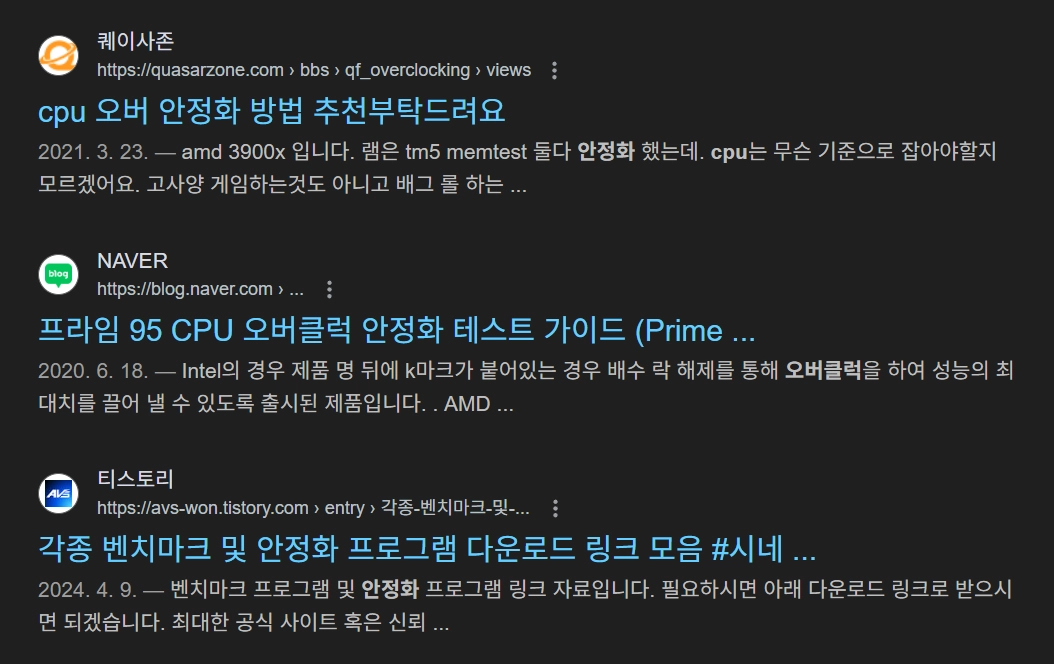 실제 오버클럭을 진행하면 다양한 "실패 증상"이 발생한다.